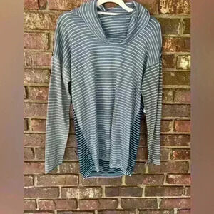 NWT NIC + ZOE cowlneck top size small, greens blues stripes