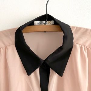 NWT NICE CLAUP Pink Blouse with Black Collar