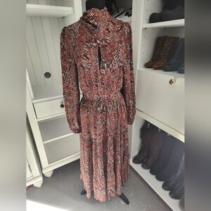 NWT NICHOLAS Eleanor Cross Neck Keyhole Snake Print Midi Dress 6