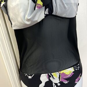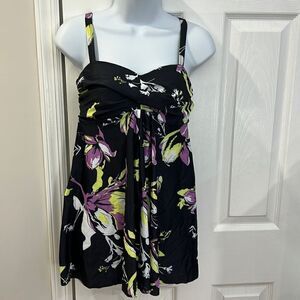 NWT NICOLE MILLER 1 pc swimdress Style twisted bandeau flyaway Sz S