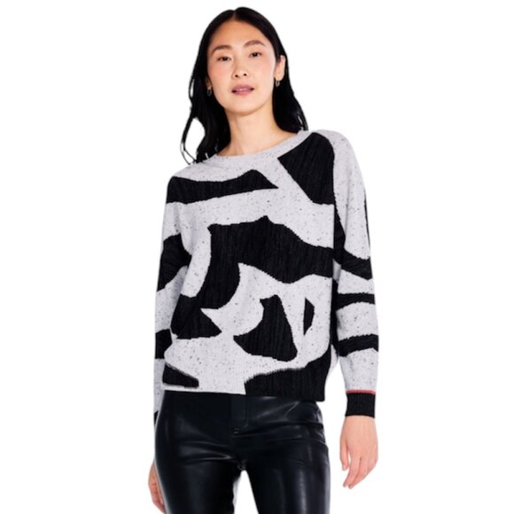 NWT NIC+ZOE Dusk Days Abstract Sweater Black Gray Size Small