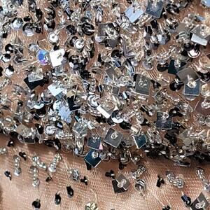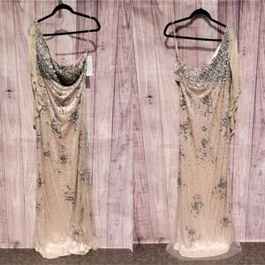 NWT NIKA by Nika Kapoor Style # 413B gown. Has major old Hollywood vibes! Has unfortunately lost some of the beading/sequins but does include a small bag of them for repairs. So while not as concentrated as shown in stock photo, it is still a gorgeous dress and could be a fun project to bedazzle, a Mother of the Bride dress or a Prom dress. So versatile!