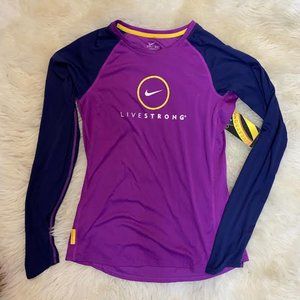 NWT NIKE LIVESTRONG Women DRI-FIT Long Sleeve Graphic Running Top Lightweight