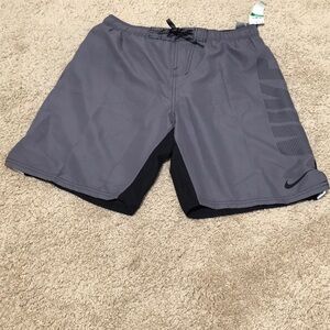 New! Nike men’s large grey combo swim trunks. Elasticized waist with drawstring and one back pocket.