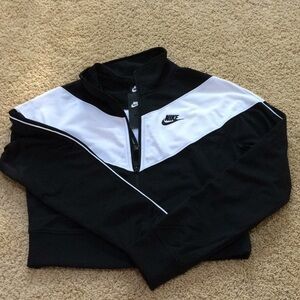 New! Nike size small white with black combo cropped long sleeve zippered sweatshirt with ribbed hem.