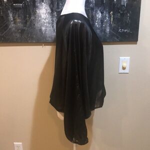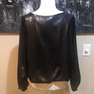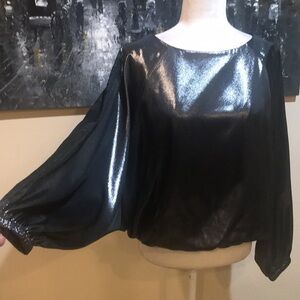 NWT NINE WEST Black/Gold Metallic Oversized Blouson Sleeve Cropped Blouse-Size L
