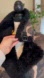 It is designed with faux-fur details at the collar and cuffed long sleeves.