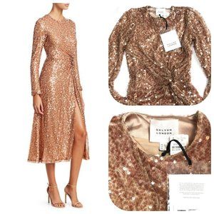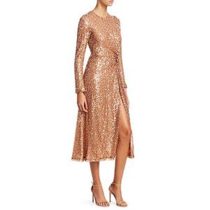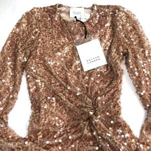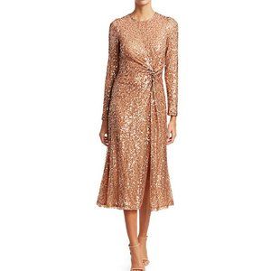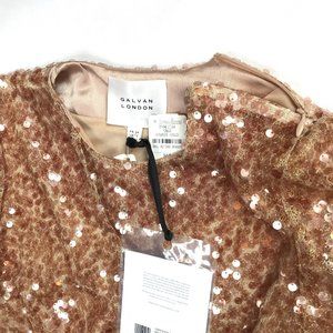 NWT Authentic Neiman Marcus Galvan London sequin long sleeve knot dress/ Evening Gown/ Made in UK, size FR 34, US 2 Color copper