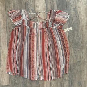 NWT (NEW WITH TAGS) NOBO (NO BOUNDARIES) BROWN/RUST/WHITE STRIPE FLUTTER SLEEVE SQUARE NECK SMOCK TOP SIZE XL (15-17).