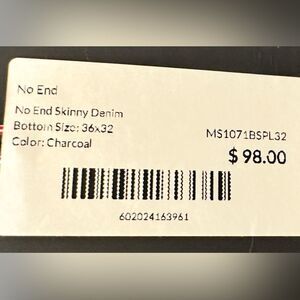 NWT NOEND Denim Men’s Charcoal Harrison Skinny Stretch Denim Jeans - Size 36