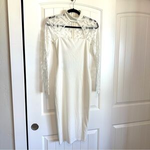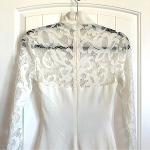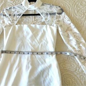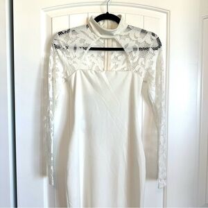 NWT NOOKIE designer bridal / engagement / party dress - lady lace midi in white, high lace detail, fitted and bodycon, size S