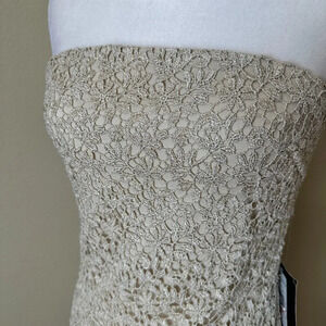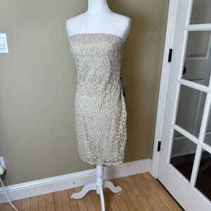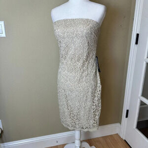 NWT NORDSTROM JS BOUTIQUE Size 10 Gold Lace Overlay Strapless Sheath Dress