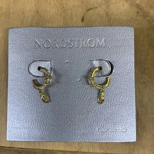 NWT NORDSTROM gold tiny hoops with cubic zirconias on and dangling