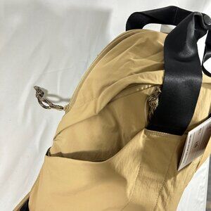 This North Face Never Stop backpack is the perfect choice for any woman on-the-go. With a spacious 20L interior and multiple pockets, you'll have plenty of room for all your essentials. The exterior is made of durable nylon and features a stylish tan color with the iconic North Face logo. The backpack has a rectangular shape with double handles and an adjustable strap for comfortable wear. It's perfect for outdoor activities, travel, or just casual use. The zip closure keeps your items secure, and the interior features a laptop sleeve and inner pockets for added organization. This backpack is a must-have for any woman who wants to stay stylish and organized on the go.
