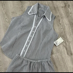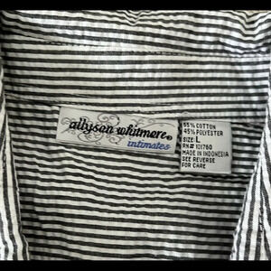 NWT NOS Allyson Whitmore Seersucker PJ or Play Set Black White Striped NEW L