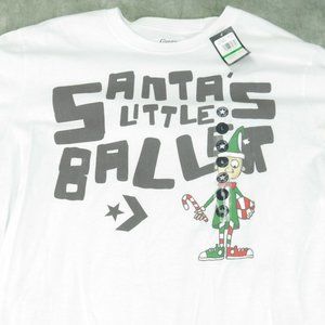 NWT NOS Converse White CHRISTMAS T- SHIRT "Santa's Little Baller" sz L P411M041