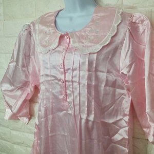 NWT NOS Prairie Collar Nightgown -M Buttons Pin-Tucks Puff LSL Shiny Pink Satin