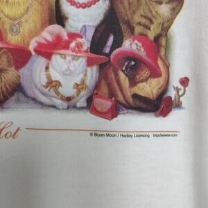 Vintage 90s Quail Hollow t shirt with cats in red hats and purses graphic. Art by Bryan Moon.