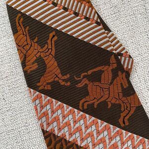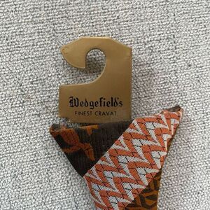 NWT NOS 70s Wedgefield’s Monsieur Cravatieur brown, orange, and gray clip on neck tie. 100% acetate Italian Rhoda. the number 24 is on the label but I’m not exactly sure what that means. The tie itself measures 18 inches long and just shy of 4 inches at its widest point.