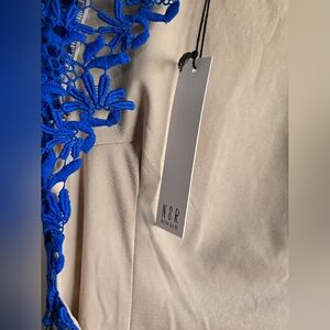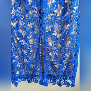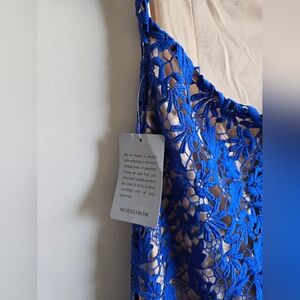 NWT! NSR, Mia Lace Short Sleeve Open Back Midi Dress, Blue/Nude, Size S