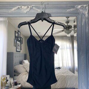 Nux Yoga Tank Top Black Spaghetti Strap V Neck Cut
