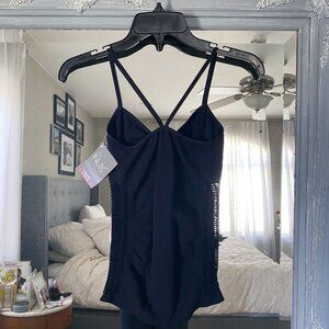 NWT NUX Cami Tank Top Activewear Mesh Side Cutout Yoga Exercise Black Size L
