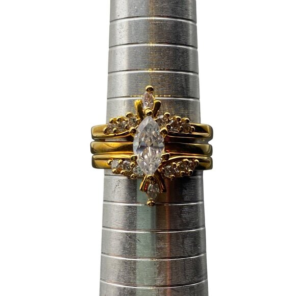 NWT NV Gold Tone 3 Pc Marquise CZ Bridal Ring Set Sz 10 Engagement Enhancers