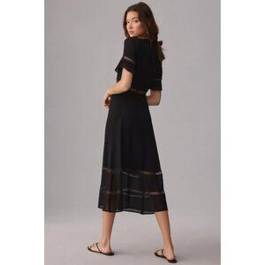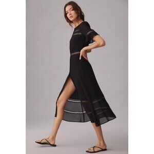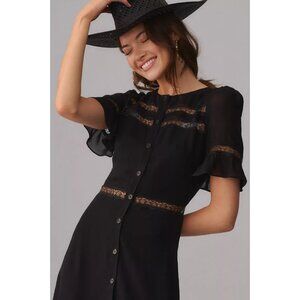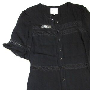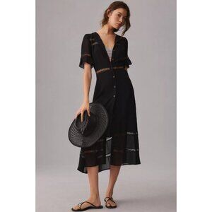 NWT NWT Reformation Woodson in Black Lace Trim Midi Button Down Shirt Dress 12