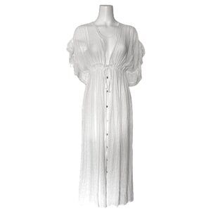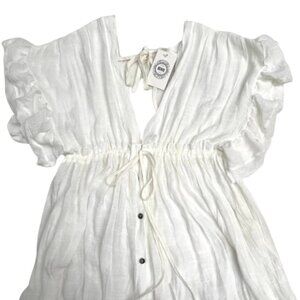 NWT NXH Ruffled sleeves white summer Boho maxi dress size (fit all) it's ties under the chest 15" to 24", length 41".Elevate Your Summer Style With The Nxh white Ruffle sleeves. Front buttons, 2 pockets - gorgeous! This Chic Dress Features Playful Ruffle sleeves, Creating A Fashionable And Comfortable Outfit For Various Occasions - easy can be used as cover up.