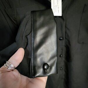 Vegan Leather Trim on Collar and Arm Cuffs