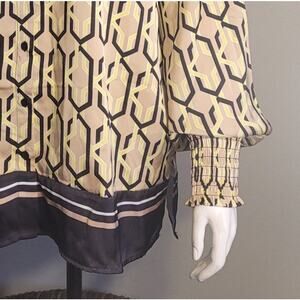 NWT NY & Co XXL Gold Black Geometric Blouse Balloon Poet Sleeve Silky Art Deco