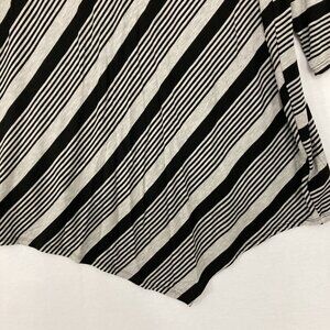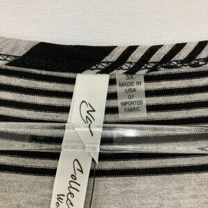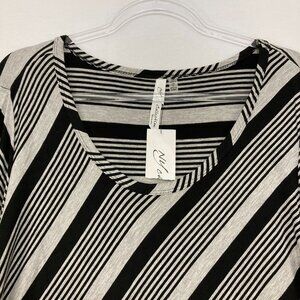NWT NY Collection 3X Black Gray Striped Asymmetric 3/4 Sleeve Stretch Top