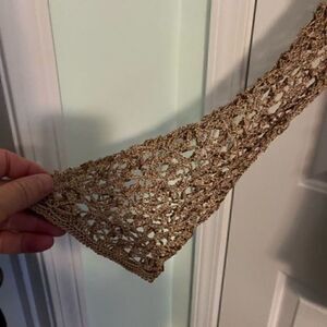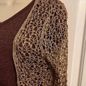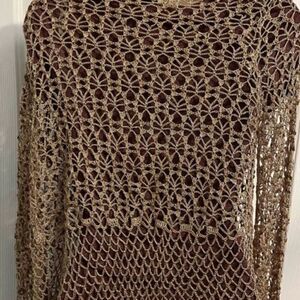 NY Collection Crocheted Beaded Cardigan. Tan and Gold. Size XS