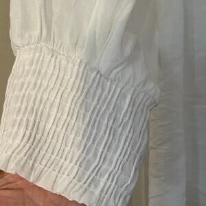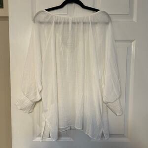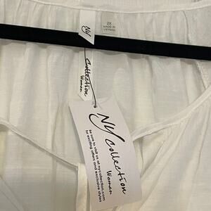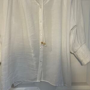 NWT NY Collection Women's 3/4 Sleeve Button Front Blouse size 2XL It's all about the details on this slubbed tie blouse from Ny Collection. The smocked cuffs and beaded ties complete the look.