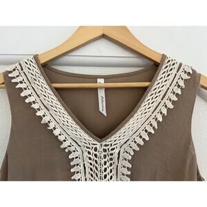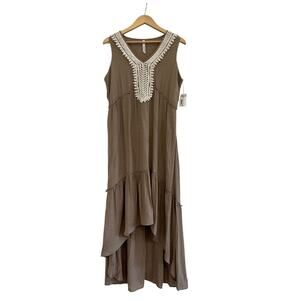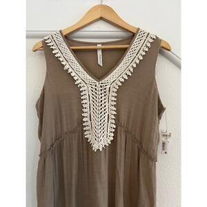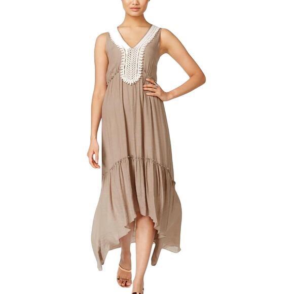 NY Collection Womens Crochet Trim Casual Maxi Dress Taupe Fairy Casual Boho