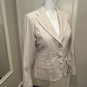 New York & Company Embroidered Eyelet Two Button Blazer, Size 8