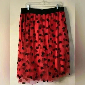 NWT NY&C 3D HEART DOUBLE-LAYERED MESH Midi SKIRT IN RED Size XXL