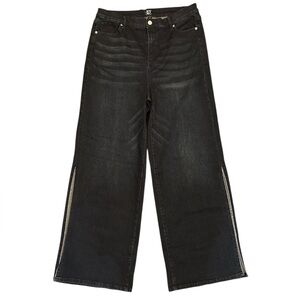 NWT, NY&CO, Women’s Rhinestone Slit Dark Blue Wash Jeans, Wide Leg, Size 14