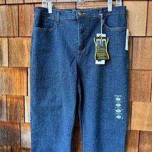 Brand new with tags and never worn! Stretch Blue Denim NYDJ Flattering Barbara Bootcut Jeans in Women's 14 - Not too long, not too short—NYDJ's Barbara Bootcut Jeans fit just right. Our exclusive Lift Tuck® Technology uses a proprietary slimming panel with a patented criss-cross design to give this comfortable, go-to style its superior shaping powers. The traditional bootcut fit gives you a flattering legs-for-days look—and makes these jeans an effortless closet staple. Finished with classic five-pocket styling, zip fly and button closure.