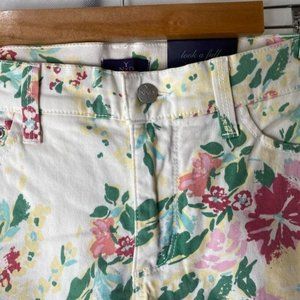 NWT NYDJ Kendall Printed Roll Cuff Ankle Jean lift tuck tech White Floral size 6