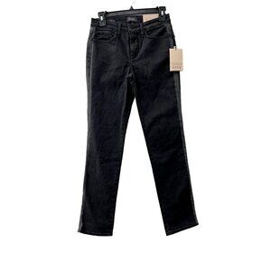 NWT NYDJ Size 0 SHERI SLIM SIDE STRIPE BLACK SS JEANS MSRP $129