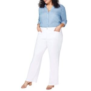 NWT NYDJ The Trouser Stretch Linen Blend Trouser Pants in Optic White Sz. 24W