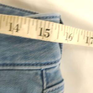 * From my measurements, waist is 31 inches, has a mid rise / mid waisted of 10.5 inches, and has an inseam of 21 inches.