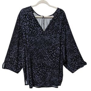 NYDJ perfect tee in plus size boho tunic three quarter sleeves animal leopard 4X