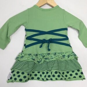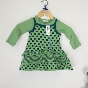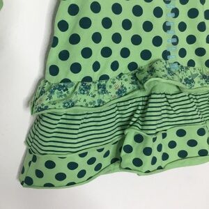 An adorable 2 piece matching set. A fun mix or polka dots, flowers and stripes. Ribbed sleeves and pant legs with frilly trim. Perfect for spring.