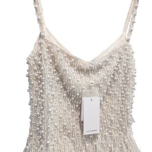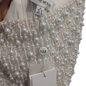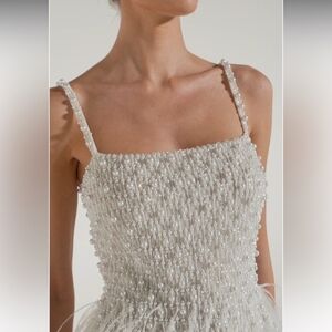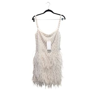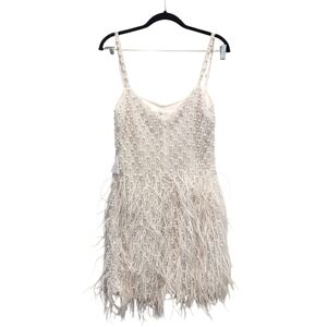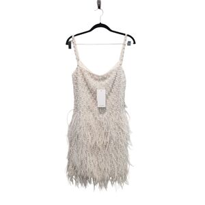 NWT Nadine Merabi Carrie Ivory White Beaded Feather Cocktail Dress Size 8/M