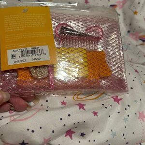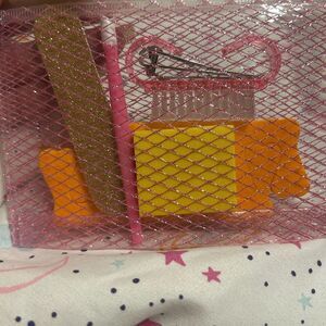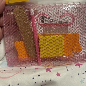Everything you need for a perfect mani/pedi with pink mesh bag great for travel.