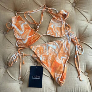This NWT Naked Wardrobe Dreamcicle String Bikini is definitely designed to be fun and flirty! The coverage is very "cheeky."