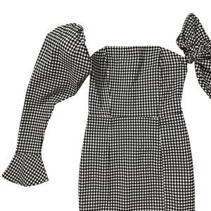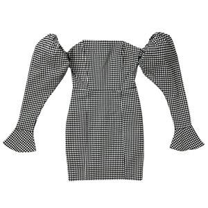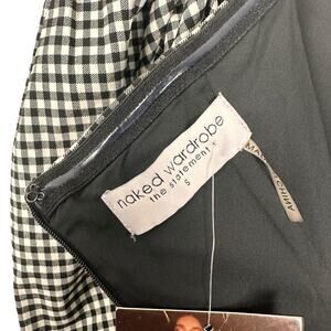 NWT Naked Wardrobe Gingham The Statement Cocktail Dress Bishop Sleeve Size Small