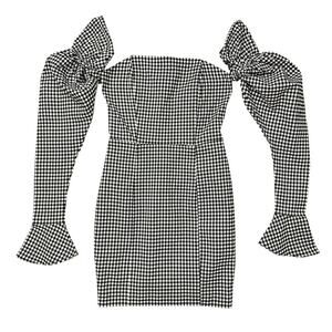NWT Naked Wardrobe Gingham The Statement Cocktail Dress Castlecore Sleeve Small